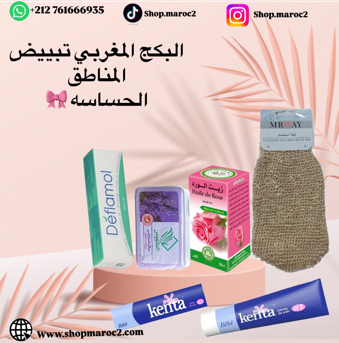 مجموعة عناية من خلطات الأنوثة المغربية 🧖🏻♀️💅🏻المجموعة تتكون من كريم كنتا المغربي + كريم ديفلامول المغربي + زيت الورد +ليفة ناعمة + صابونة الطاووس هاذي المجموعة تشيل التصبغات الداكنة والجلد المييت ويرطب بعمق نتيجته من اول استخدام •المنتجات طبيعية بدون كورتيزون